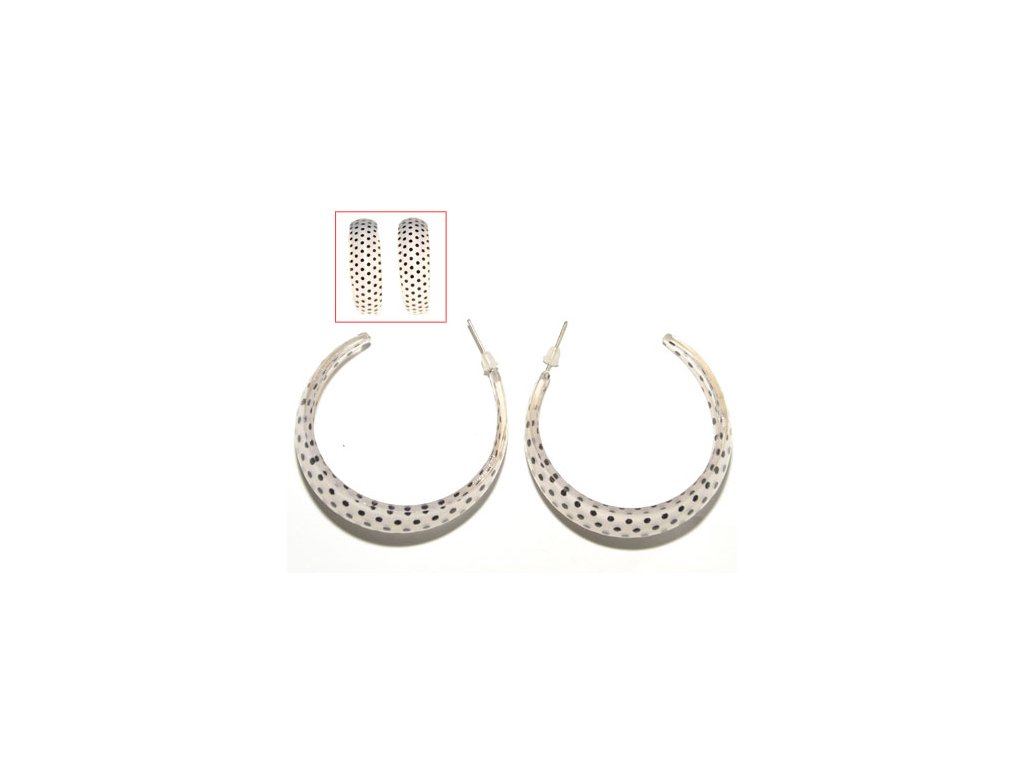 Zaujímavé plastové náušnice s bižutérnym ukončením - biele s čiernymi srdiečkami.