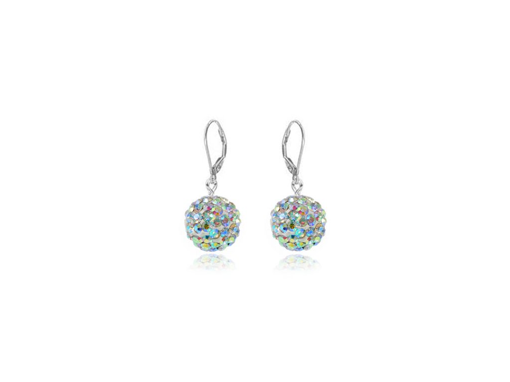 Nádherné ligotavé náušnice s guľôčkami s čírymi AB Swarovski krištálmi.