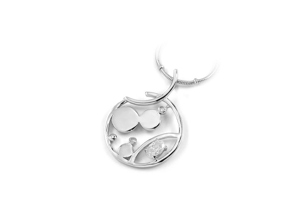 Nádherný, zaujímavý strieborný prívesok potiahnutý ródiom a osadený čírymi kubickými zirkónmi. Jedinečný kúsok.