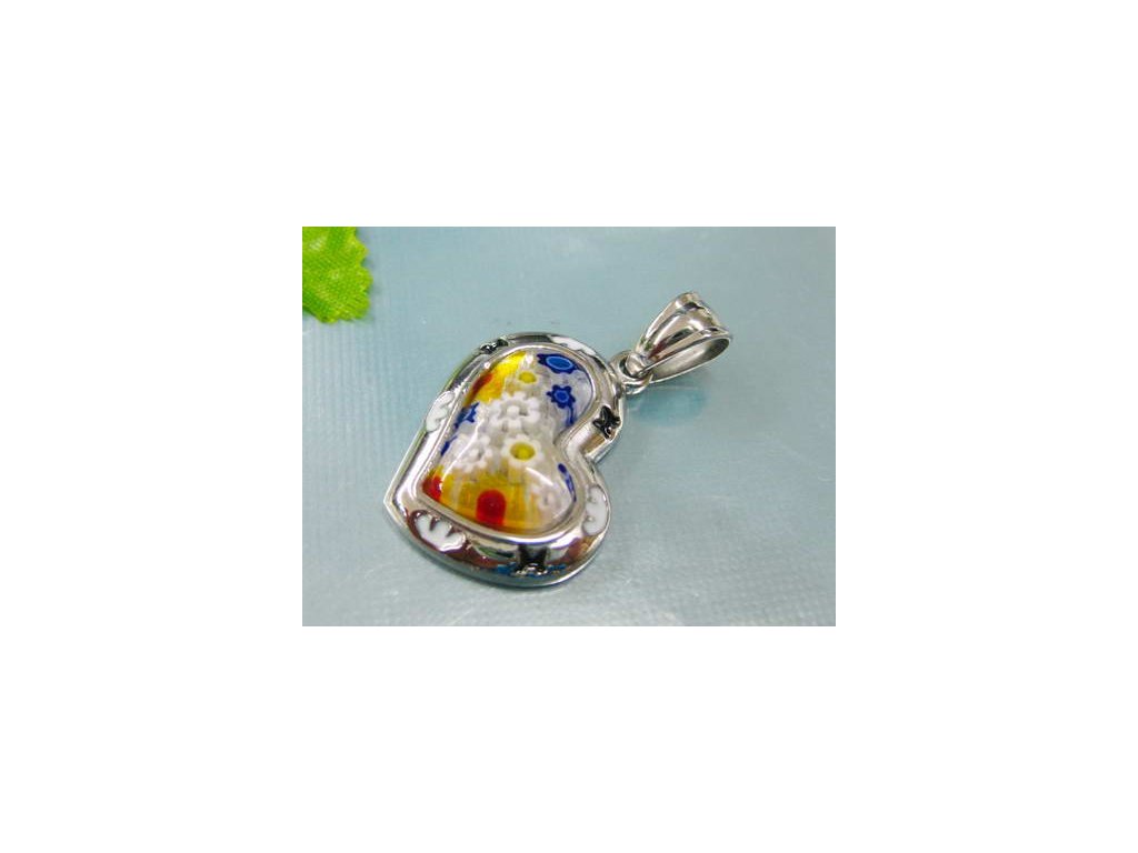 Nádherné, romantické srdiečko - prívesok z chirurgickej ocele s murano sklom Millefiori.