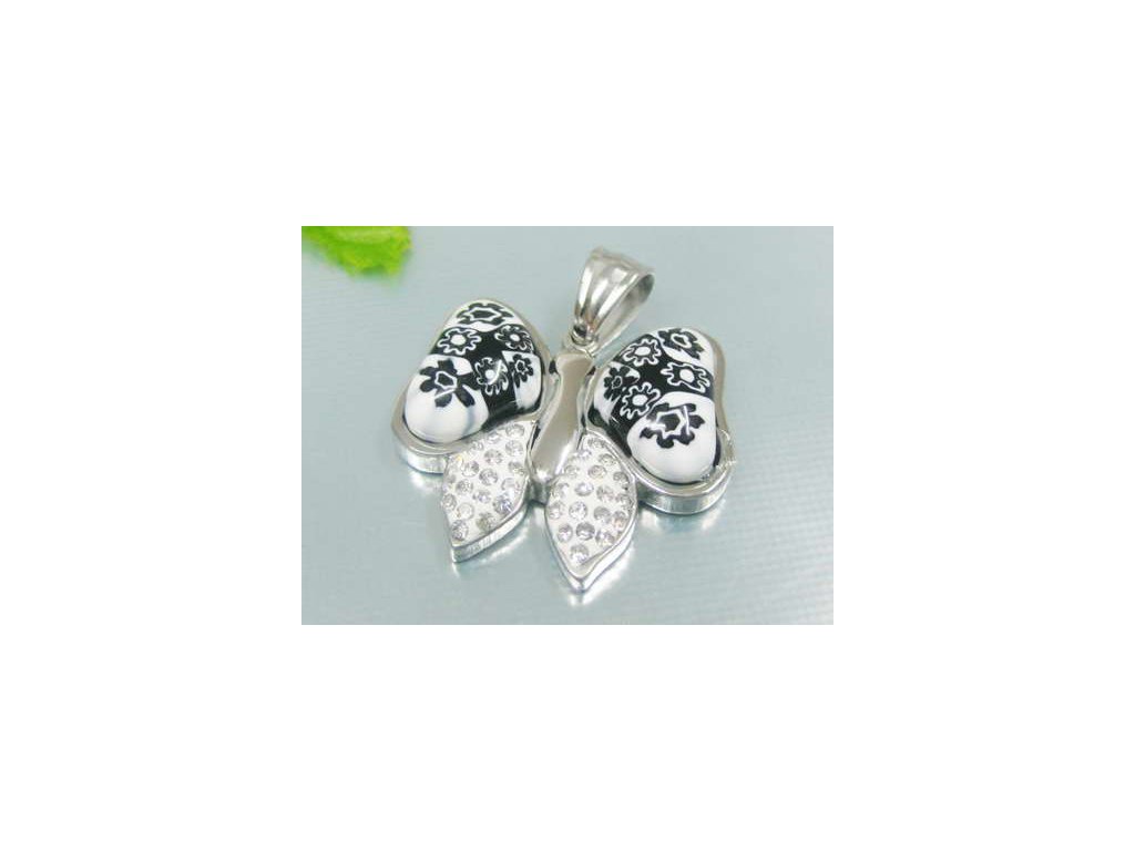 Jedinečný motýľ - prívesok z chirurgickej ocele, osadený čírymi zirkónmi a murano sklom čierno-bielej farby.