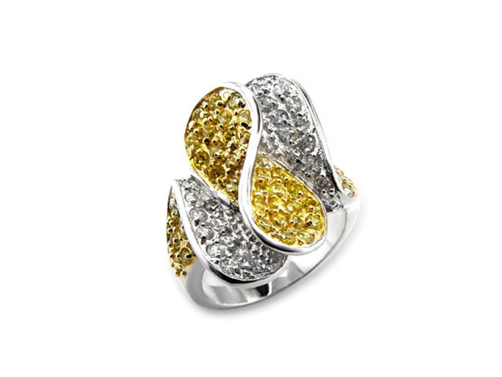 Nádherný prsteň, ródiovaný, pozlátený, osadený zirkónmi.