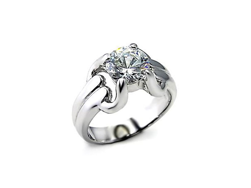 Krásny ródiovaný prsteň, osadený čírym zirkónom.