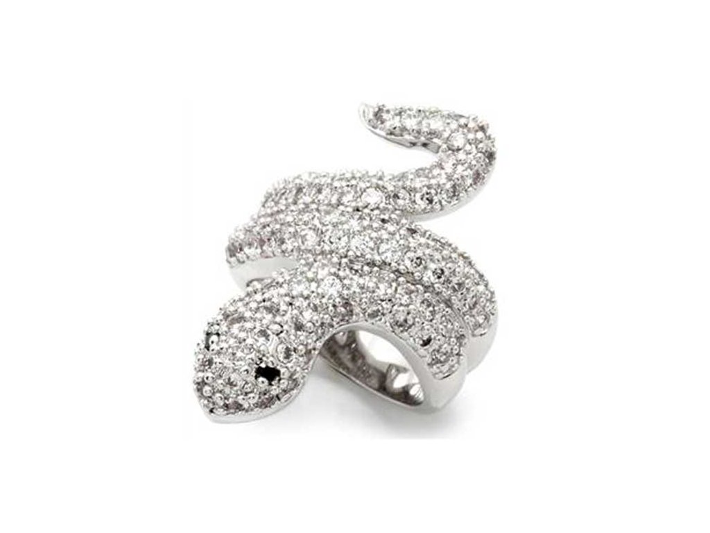 Úžasný ródiovaný prsteň s motívom hada. Očká má spravené z čiernych kubických zirkónov, zvyšok tela z čírych. Nádherná šperkárska práca.