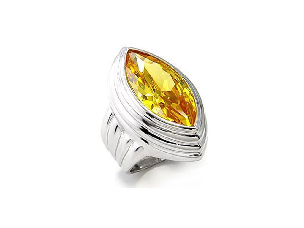 Nádherný strieborný prsteň osadený výrazným žltým zirkónom a potiahnutý ródiom.