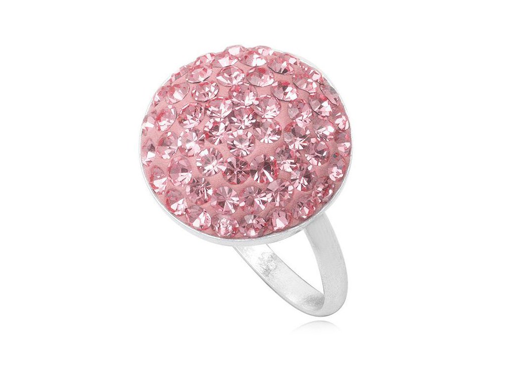 Nádherný jemný strieborný prsteň s ružovým kruhom osadeným Swarovski krištálmi. Krásny výrazný prstienok.
