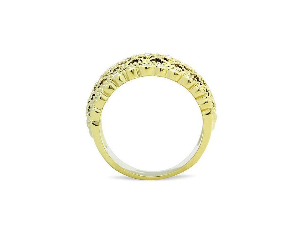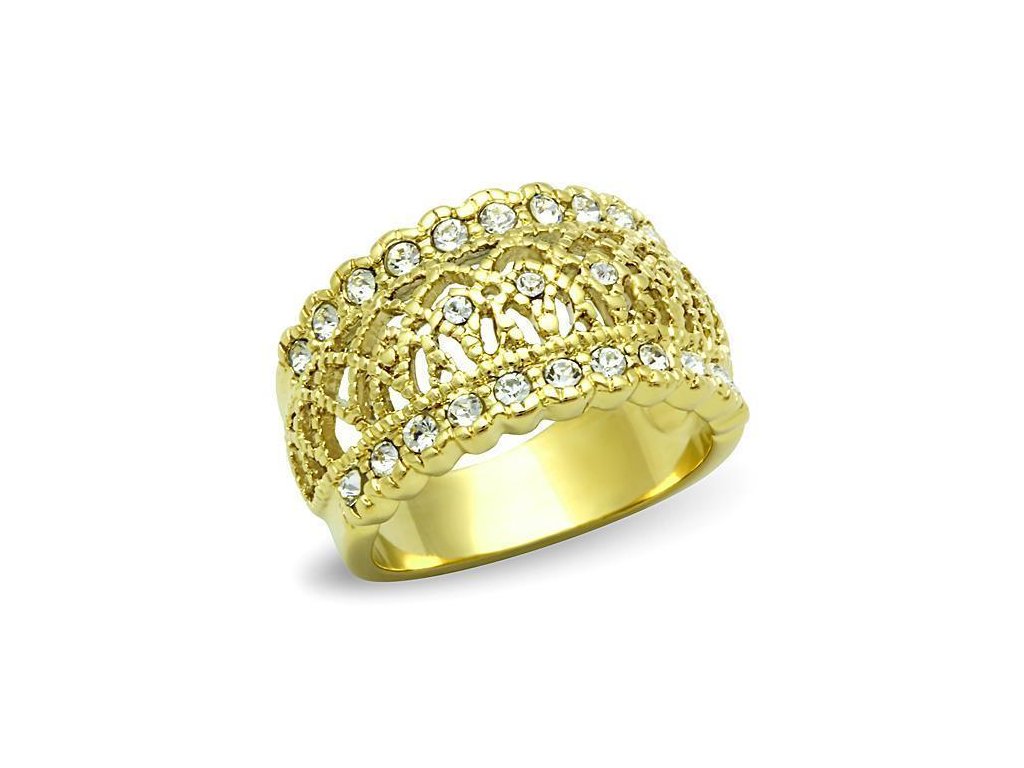 Úžasný, ligotavý prsteň z chirurgickej ocele potiahnutý žltým zlatom a ozdobený drobnými čírymi kubickými zirkónikmi.