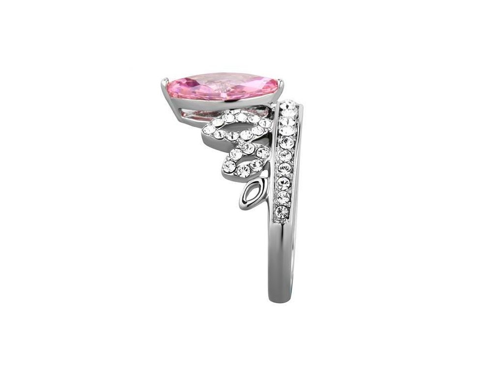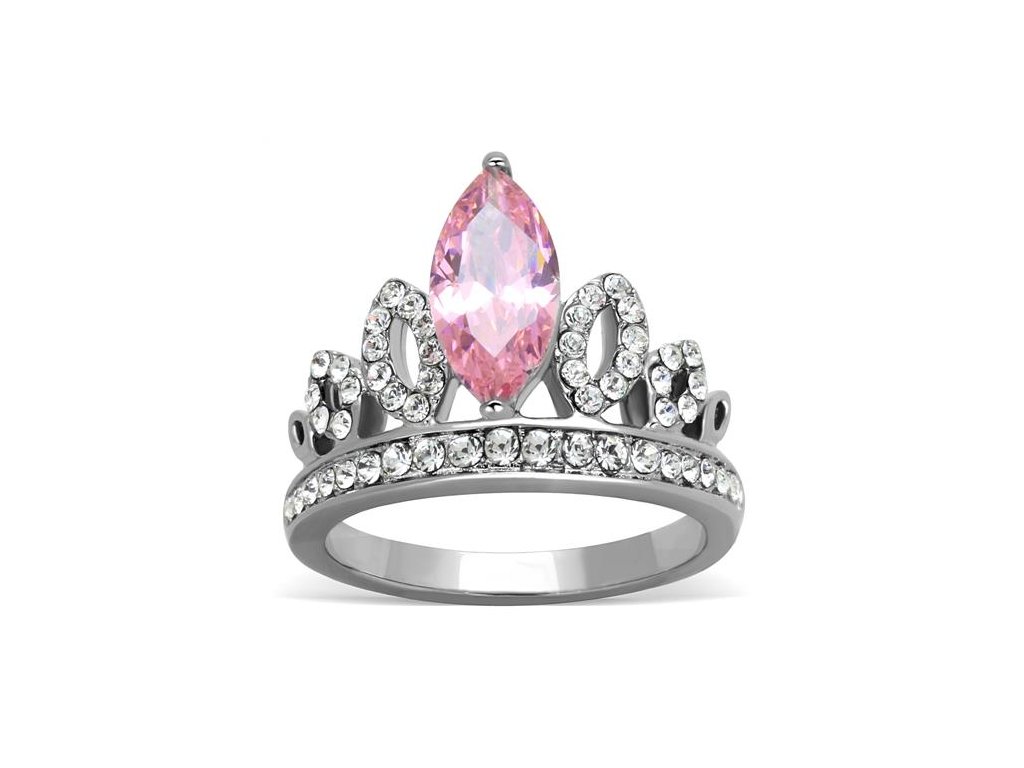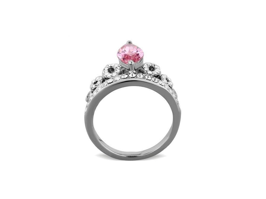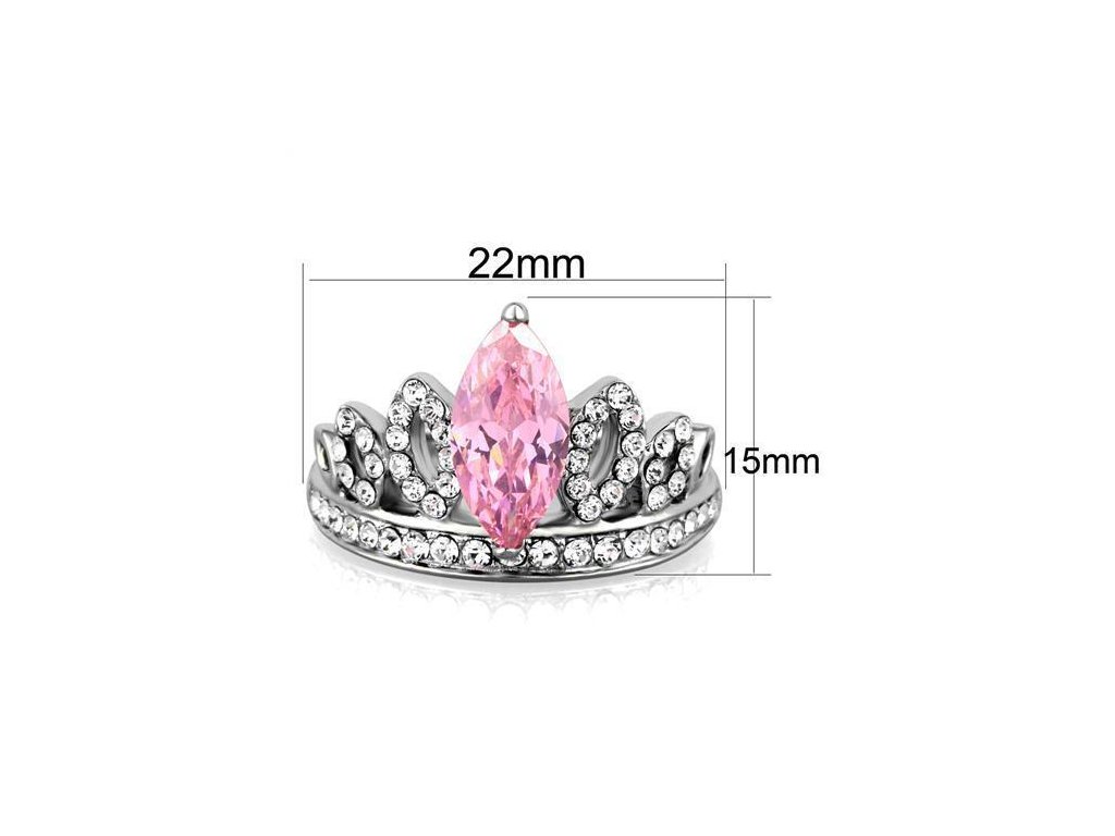 Nádherná korunka - prsteň z chirurgickej ocele osadený väčším ružovým a drobnejšími čírymi kubickými zirkónmi.