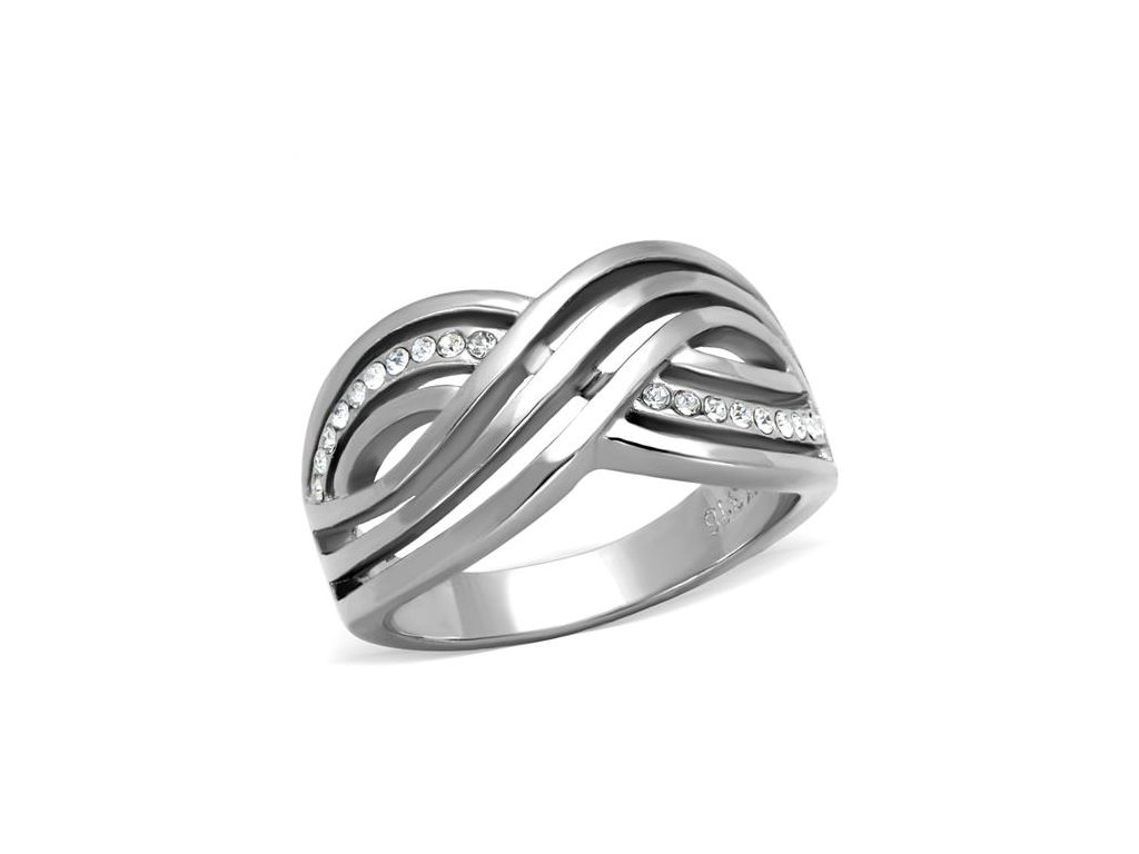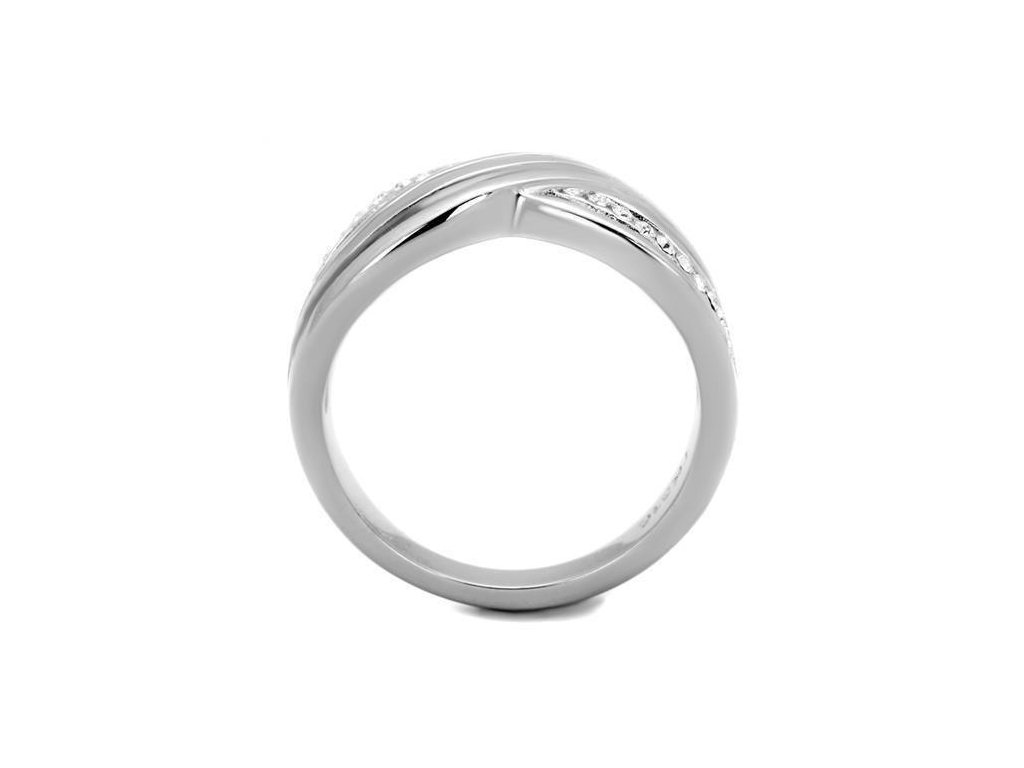 Elegantný jemný oceľový prsteň zdobený drobnými čírymi kubickými zirkónmi.