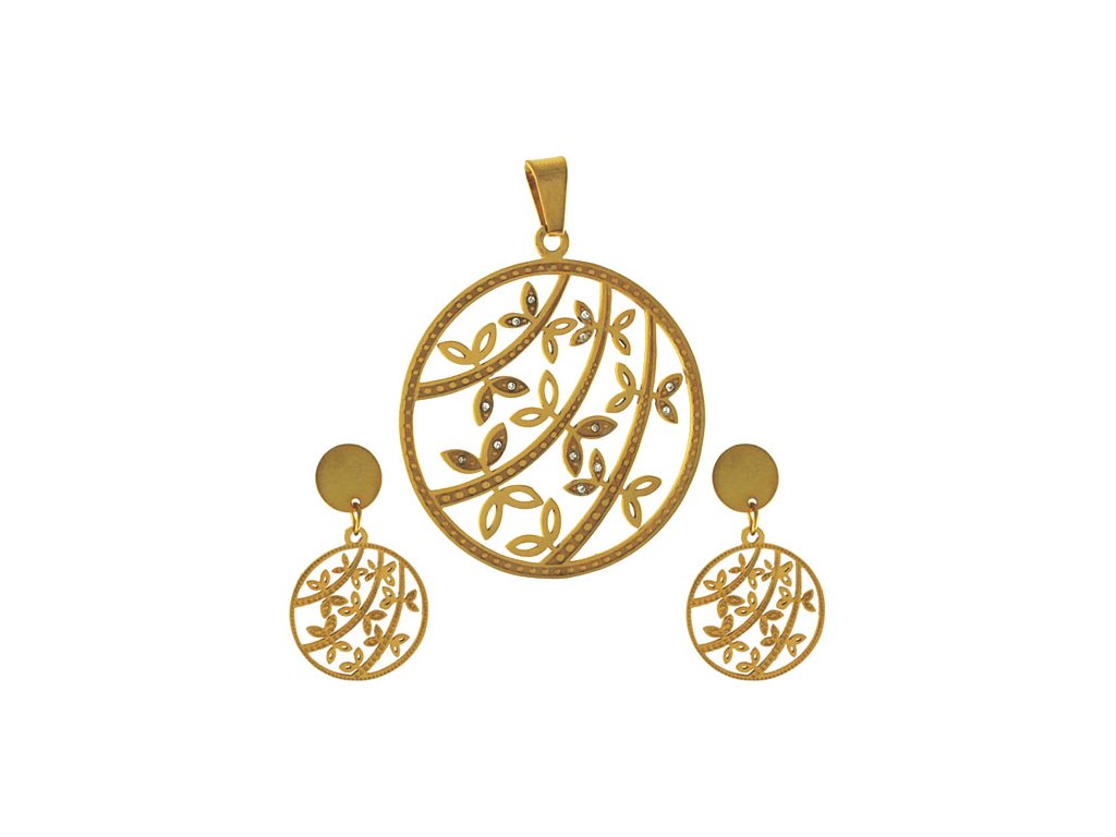 Nádherný set z chirurgickej ocele potiahnutý žltým zlatom s čírymi kubickými zirkónmi zložený z prívesku a náušníc.